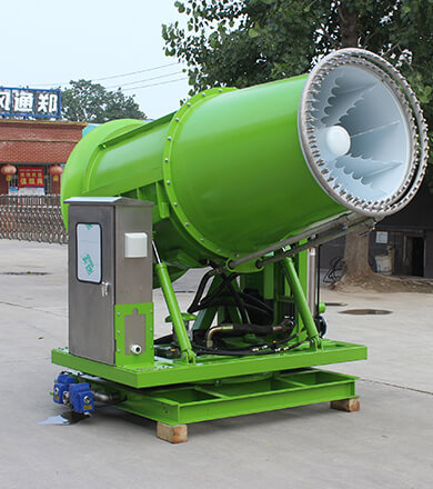 然而,需要注意的是,降溫霧炮機(jī)的效果也受到其他因素的制約。風(fēng)向是一個(gè)重要的因素,如果風(fēng)向正好吹向霧炮噴灑的方向,水霧會(huì)被風(fēng)吹走,降溫效果可能會(huì)減弱。此外,環(huán)境污染物也可能影響降溫霧炮機(jī)的效果,因?yàn)槲廴疚飼?huì)與水霧混合,降低水霧的散播和降溫效果。