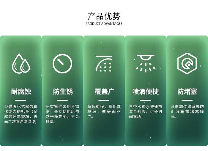 1.射程遠(yuǎn)、覆蓋范圍廣、工作效率高、可以實(shí)現(xiàn)精量噴霧;