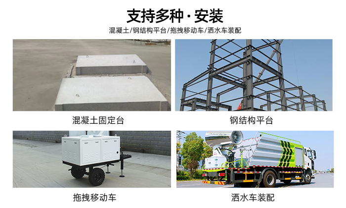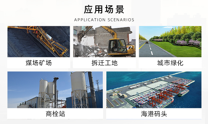 除塵范圍:粉塵治理、露天物料堆場、煤炭物流園區(qū)、露天礦山開采、露天爆破粉塵、封閉卸料區(qū)、卡車卸料口、自卸車卸料粉塵、大型裝載車工作粉塵、沿海港口裝運、轉(zhuǎn)運煤炭、礦石、散裝粉料搬運等粉塵污染治理;保濕降溫:飛機場、高速公路、車站、碼頭、公共場所、運動場地、炎熱場地等大范圍降塵保濕降溫消毒;噴藥病害防治:垃圾填埋場、衛(wèi)生防疫、城市園林綠化以及自然災(zāi)害過后大面積的殺菌、消毒、除臭、防疫防治病蟲害等。
